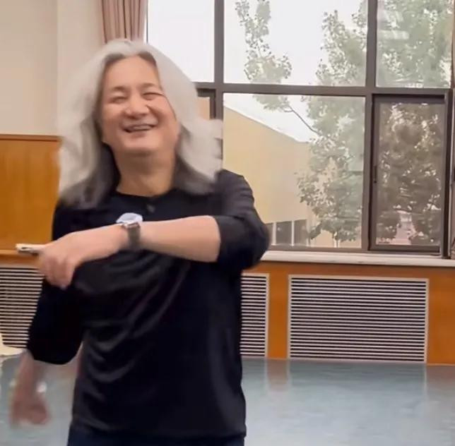她跟高老师一起跳舞,她跳得还没67岁的老师有劲。