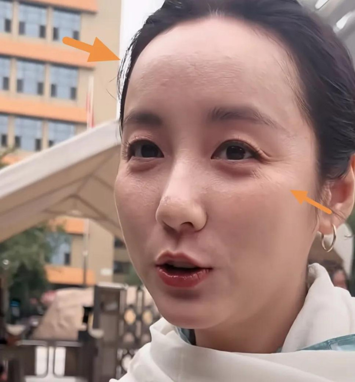 她的皮肤有些粗糙,额头跟T区的痘痘,粉底都快盖不住了;她的眼纹也深,即使眼周不动,那些细细干纹还是存在着,她眼周脂肪的流失有些严重。