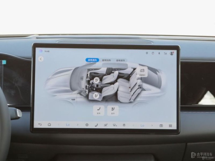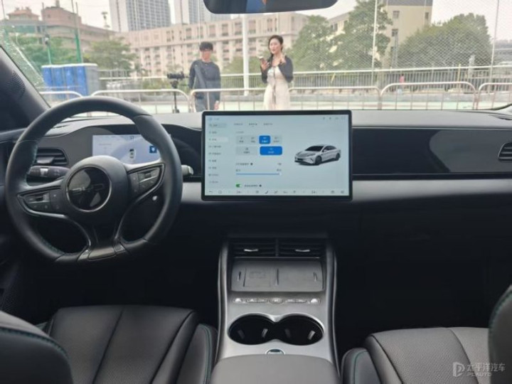 内饰方面,前排仪表台采用对称式布局,横贯整个仪表台的黑色面板将8.8英寸全液晶仪表内嵌其中,与12.8英寸(最高15.6英寸)悬浮Pad形成层叠式错落搭配,视觉效果开阔。